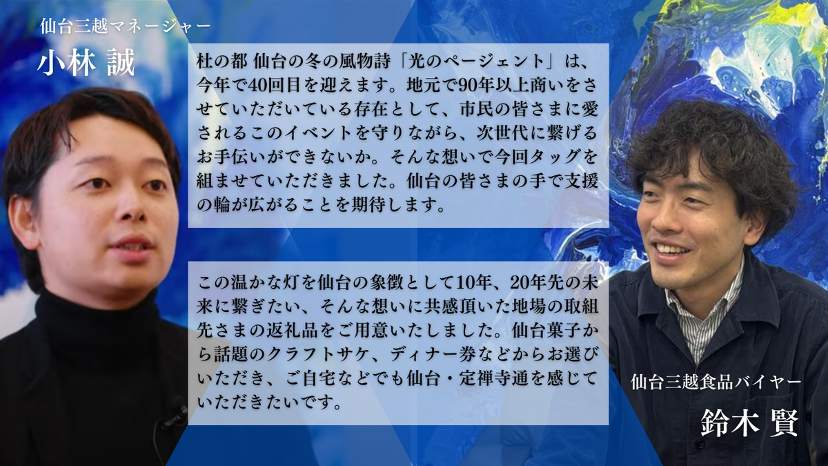 SENDAI光のページェントが、仙台三越とともに「光のページェント」を未来へ次世代に繋ぐプロジェクトです。